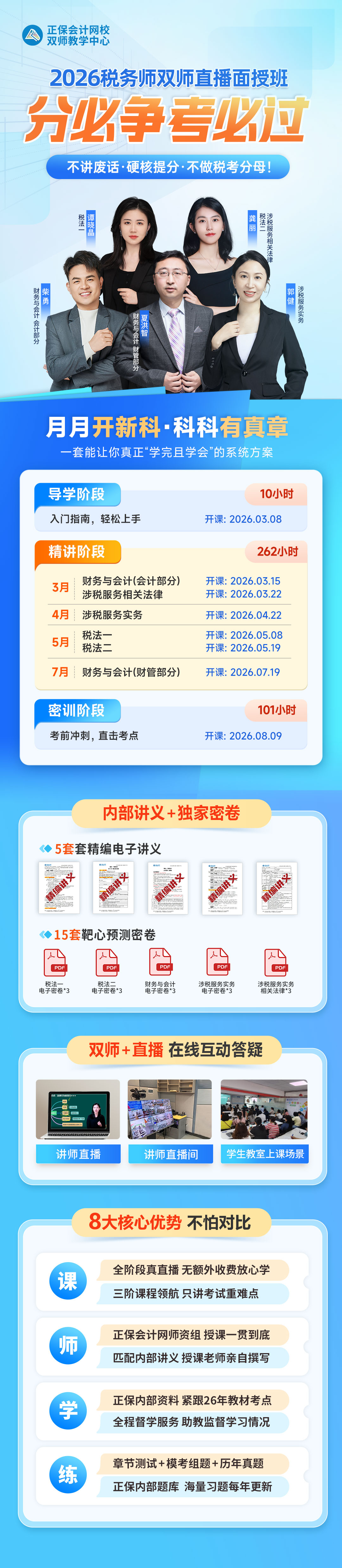 当前位置:课程 > 2026税务师-五科(谭晓晶、柴勇、夏洪智、郭健、龚丽)